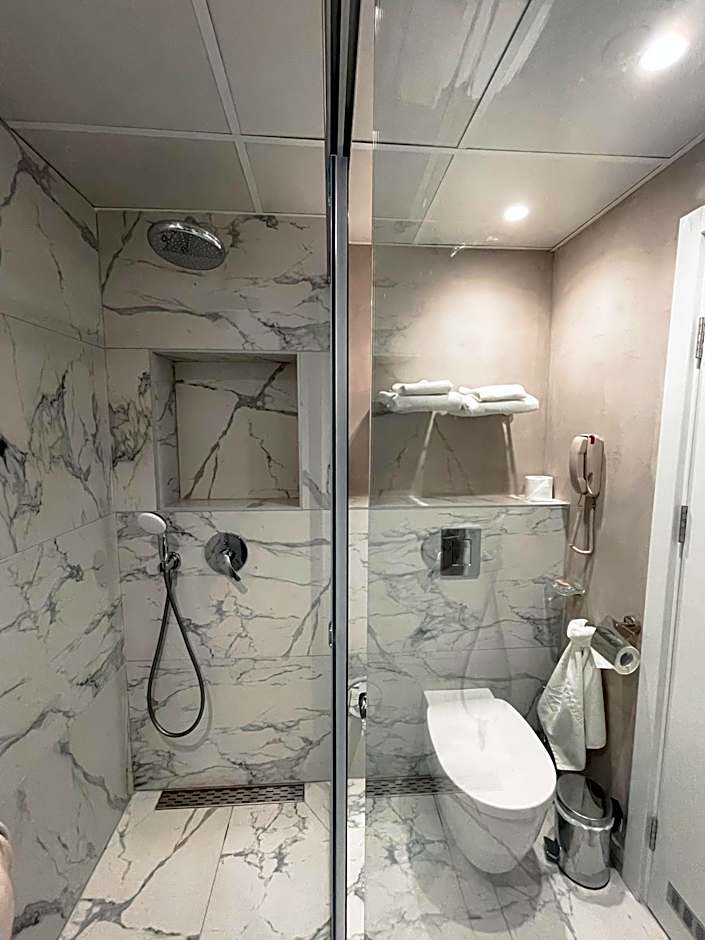 Economy room Single Use is 323 square feet and includes either a single bed 80-130 width or a king-size bed 150-183 width plus a sofa bed plus desk, cable tv, hairdryer, tea and coffee making facilities , safe, bathrobes, and slippers.