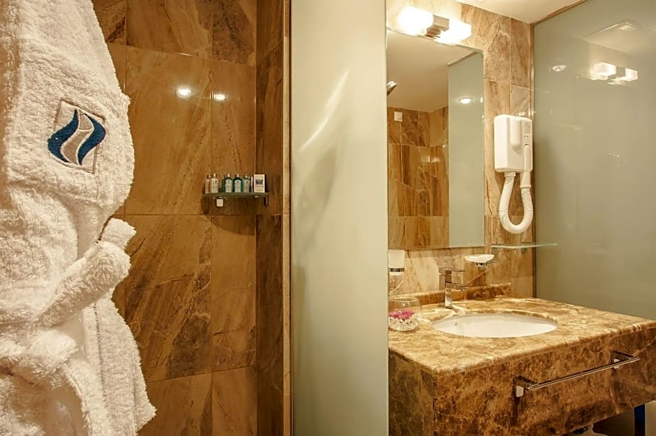 This type of room offers guests direct sea view and access to an Executive Lounge. The air-conditioned unit features a seating area, cable TV, a mini-bar, a private bathroom fitted with shower or a bath tub and free toiletries. The Executive Lounge access includes breakfast, snacks menu, desserts and fruits, hot and cold beverages, personal Concierge service, free WiFi, business corner and use of boardroom. Other services like a-la cart lunch and dinner, selection of alcoholic and nonalcoholic beverages are also available at an extra charge. Please note that park or sea view is a subject availability upon check-in.
